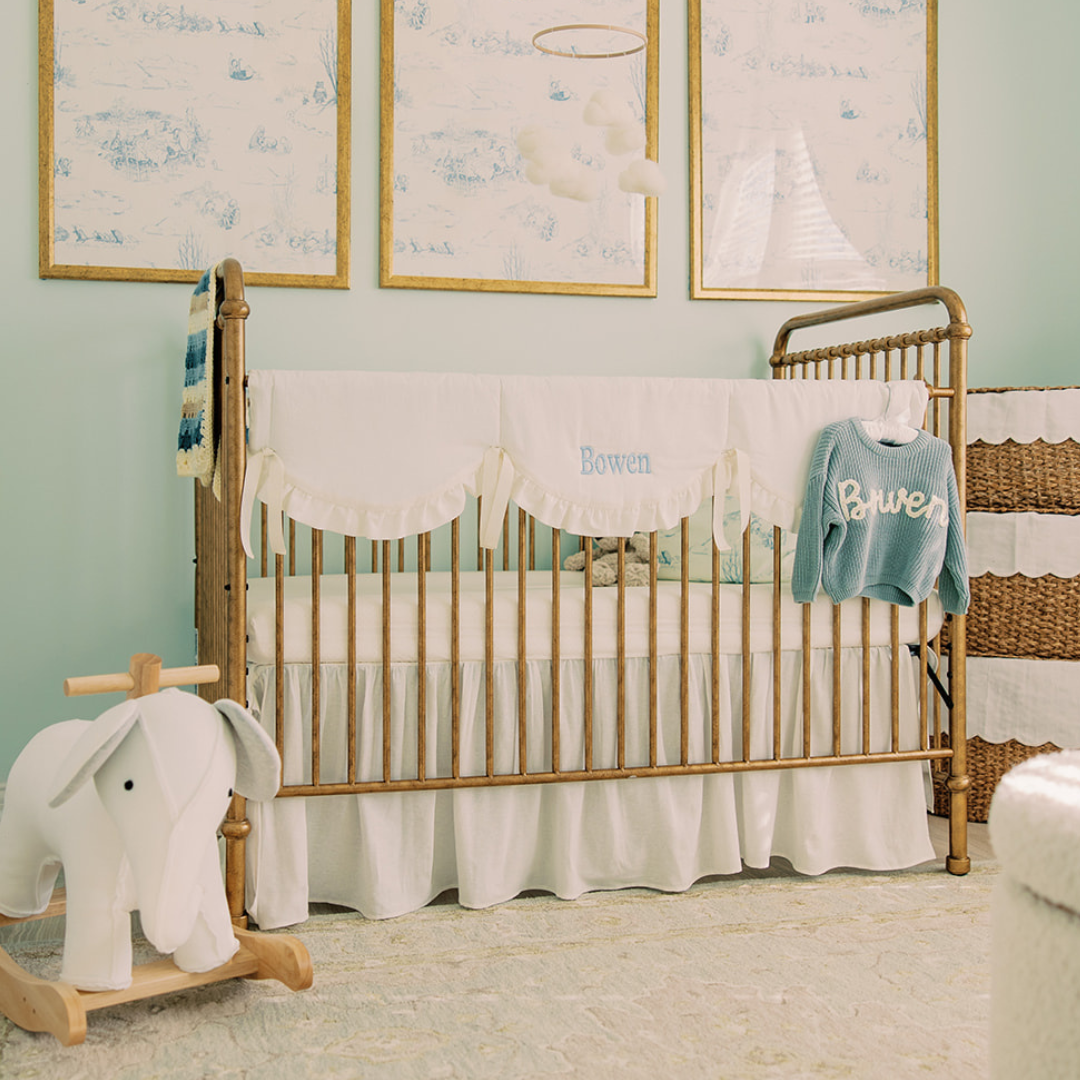 Liz and Roo is a small, women-owned business, and we understand the impact we have on the world around us. American-made also means supporting local communities and employing a superb work force from our own backyard. Working with our sewing team from conception to production is something we love. It is what sets our bedding apart from the others. We both stock and custom-make baby girl bedding and baby boy bedding, window treatments, pillows, and more! Let us help you build the nursery of your dreams.