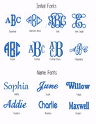 - Monogramming is available at $20 charge. All monograms are placed in the bottom corner unless otherwise specified.
