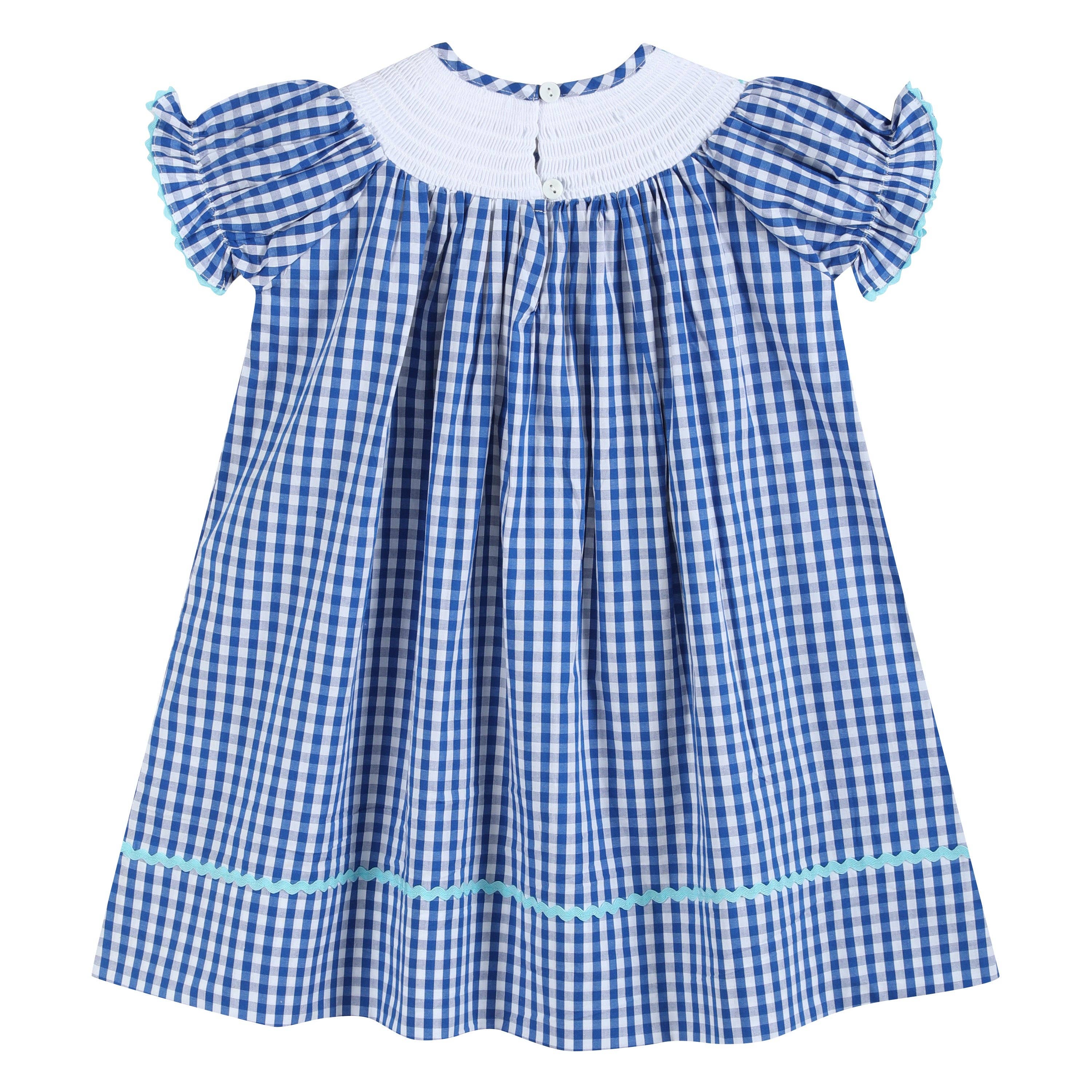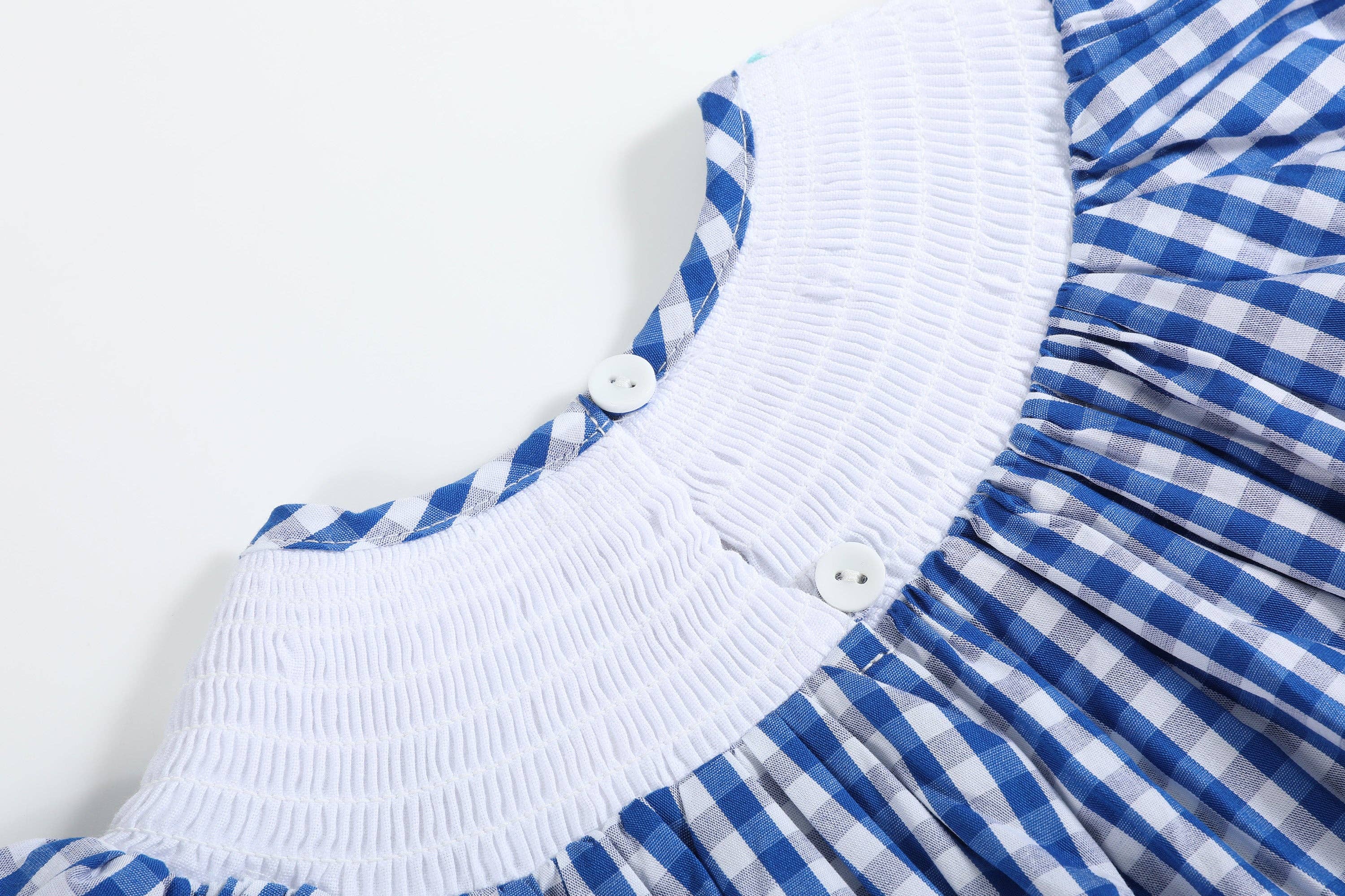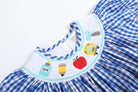Ready, set, school days! Our Royal Blue Gingham School Smocked Bishop Dress is the perfect blend of charm and sweetness. Adorned with adorable school items along the neckline and made in delightful royal blue gingham, this dress makes every day a colorful adventure. Perfect for Back to School style that's as vibrant as your little one's imagination!