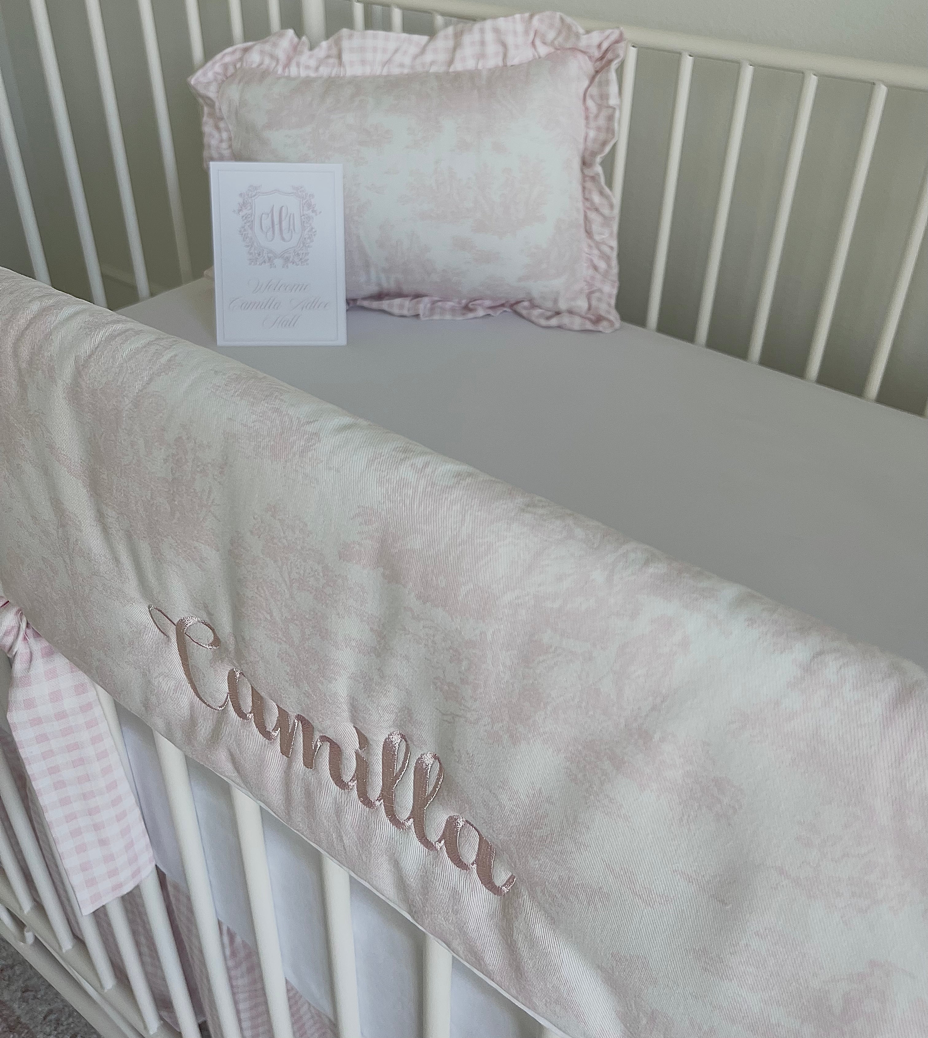 Bundle and save! We make designing your nursery easy! You can buy our beautiful baby bedding sets, with matching curtains, decorative pillows and blankets ready to ship - normally 48 hours after you order. Monogramming takes one to two weeks.