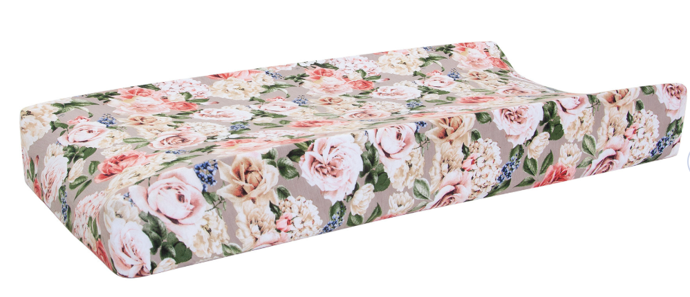 Liz and Roo's contoured changing pad covers are hand-sewn with love in the USA. We offer a wide selection of fabrics and patterns to complement your baby’s nursery decor and you’ll love our strong elastic band that keeps our changing pad covers snug, even when baby is squirming. All changing pad covers have matching or coordinating crib sheets.