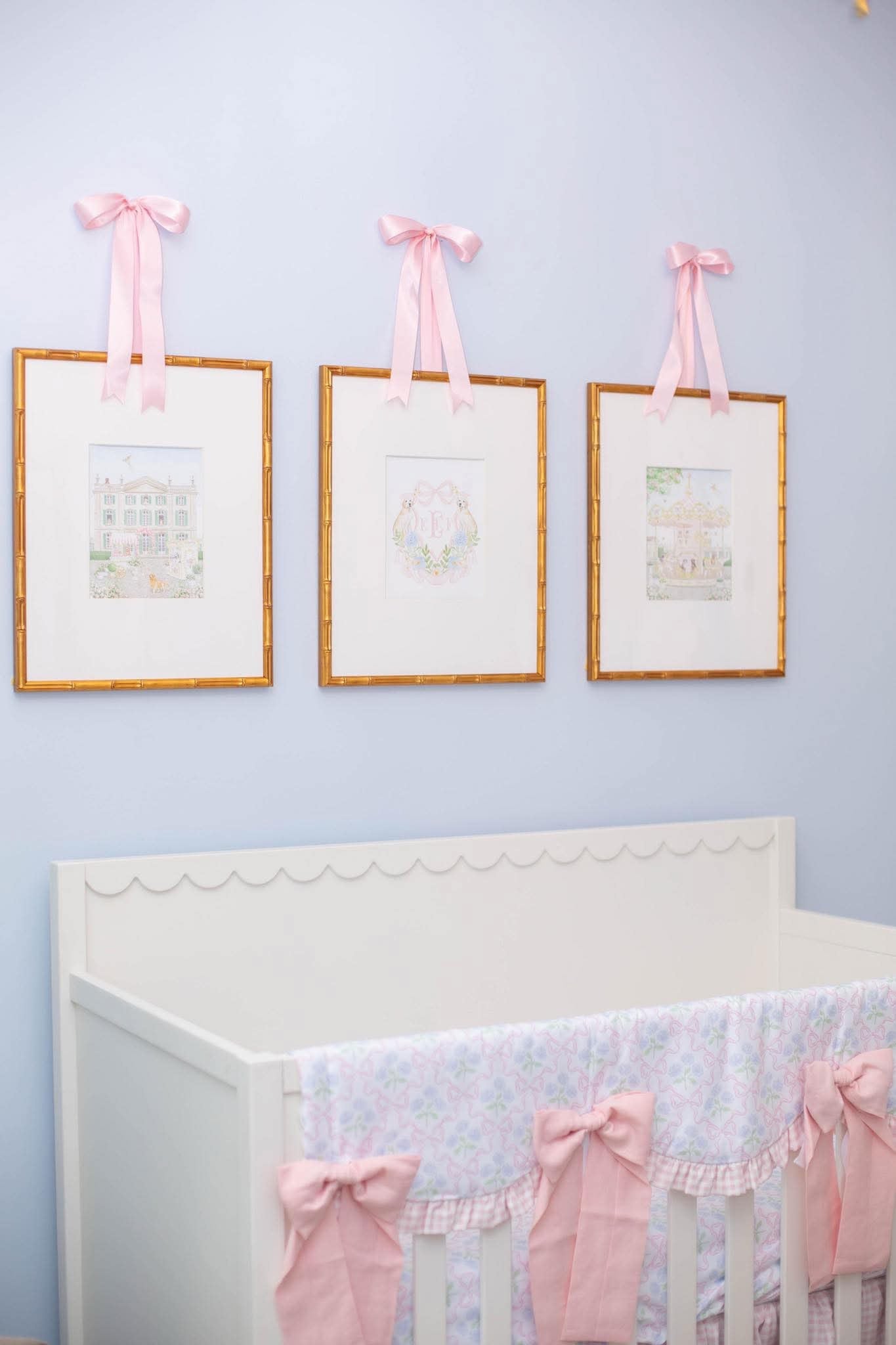 - The oversized bows are not included. Add oversized bows in petal pink, white, or sage linen as shown pictured for $19.99 per bow.