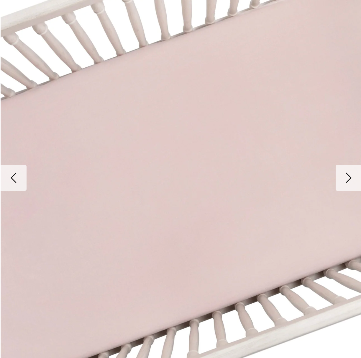 - Petal Pink Linen crib sheet with a strong elastic band that wraps all the way around the sheet